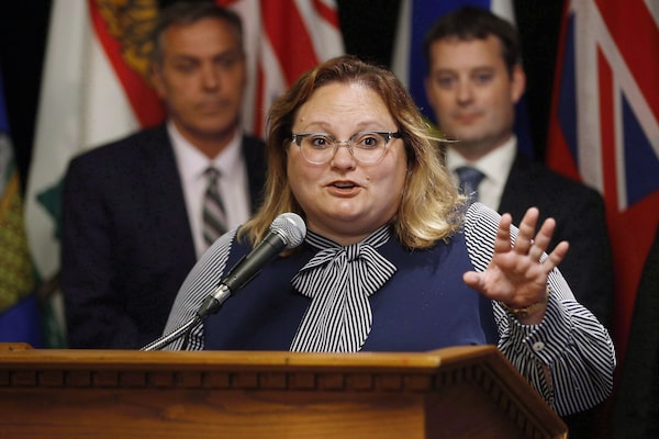 Sarah Hoffman responds to a reporter's questions in Winnipeg on June 28, 2018.John Woods/The Canadian Press