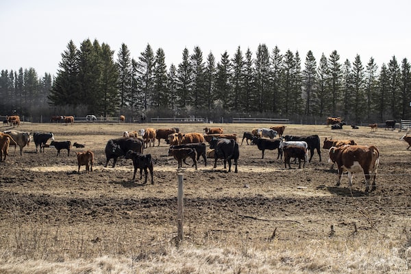 Cattle roam in a field where there will be a potential feedlot near Pigeon Lake, Alta, on May 1.JASON FRANSON/The Canadian Press