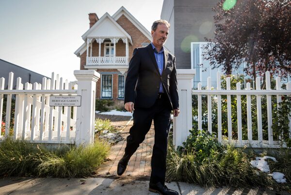 Medicine Hat is 'a microcosm of Calgary and a microcosm of the entire province of Alberta,' says Mayor Ted Clugston, shown leaving the garden of the oldest brick building in downtown Medicine Hat.Photos: Jeff McIntosh/The Globe and Mail