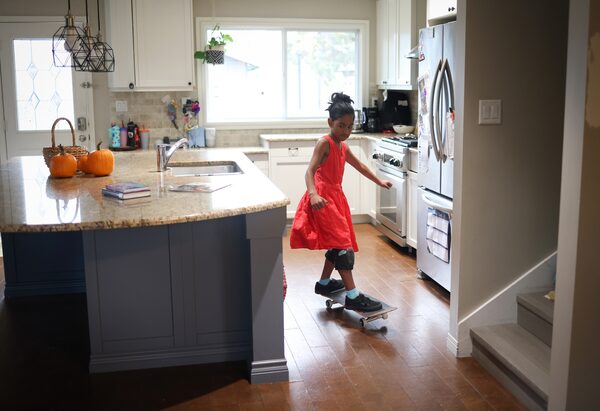 Meanwhile in Calgary, Amaya Mohammed, 7, and her sister Safiya, 5, devote hours to skateboarding at a nearby park, often riding in their salwarkameez (traditional Pakistani clothes).