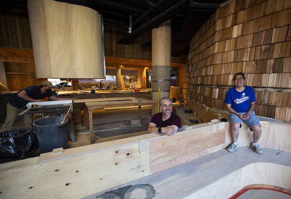 Justin Leboe, left, corporate chef at Banff Hospitality Collective and Chef Kaede Hirooka at their new restaurant Hello Sunshine under construction in Banff, Alta.Todd Korol/Todd Korol/The Globe and Mail