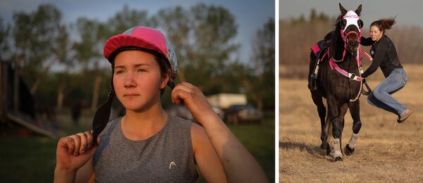 On her family ranch outside Glaslyn, Sask., Ms. L'Heureux wears the chuckwagon-racing gear in her signature colour, pink.