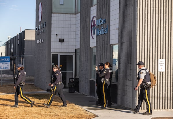 At least a dozen RCMP officers were inside and outside MHCare Medical Corp.’s headquarters in Edmonton on Wednesday.JASON FRANSON/The Globe and Mail