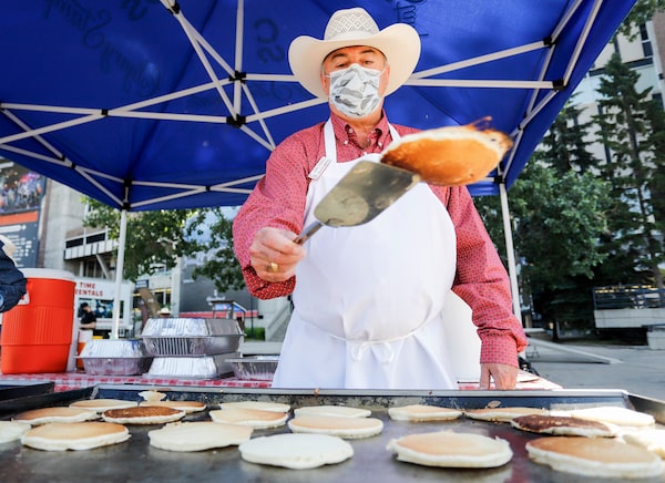 John Tyrrell flips pancakes outside the grandstand on the Stampede grounds.Jeff McIntosh/The Canadian Press