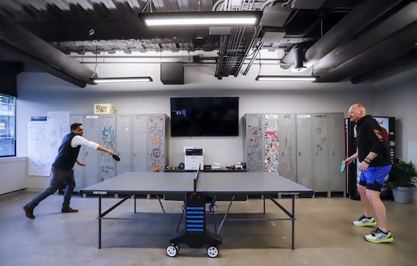 Two people play ping pong in the tenant lounge at the Edison Building.Jeff McIntosh/The Globe and Mail