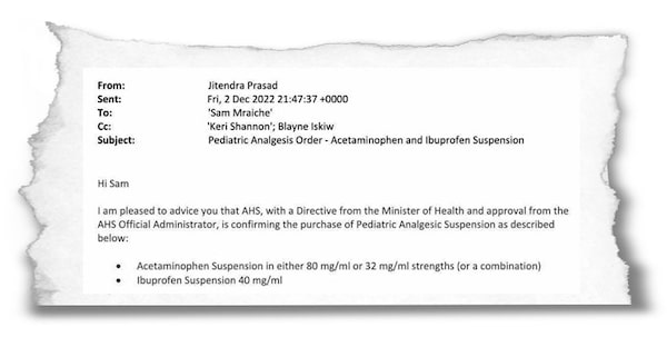 Only 1.5 million bottles were ever delivered, and less than 1 per cent of what arrived was ever used. At the end of 2024, Alberta Health Services wrote to MHCare stating that the company had been holding $49.2-million of public funds for “well over a year,” owing to the children’s medication deal and a subsequent agreement to buy other drugs. AHS demanded an update on the company’s effort to fulfill its obligations.