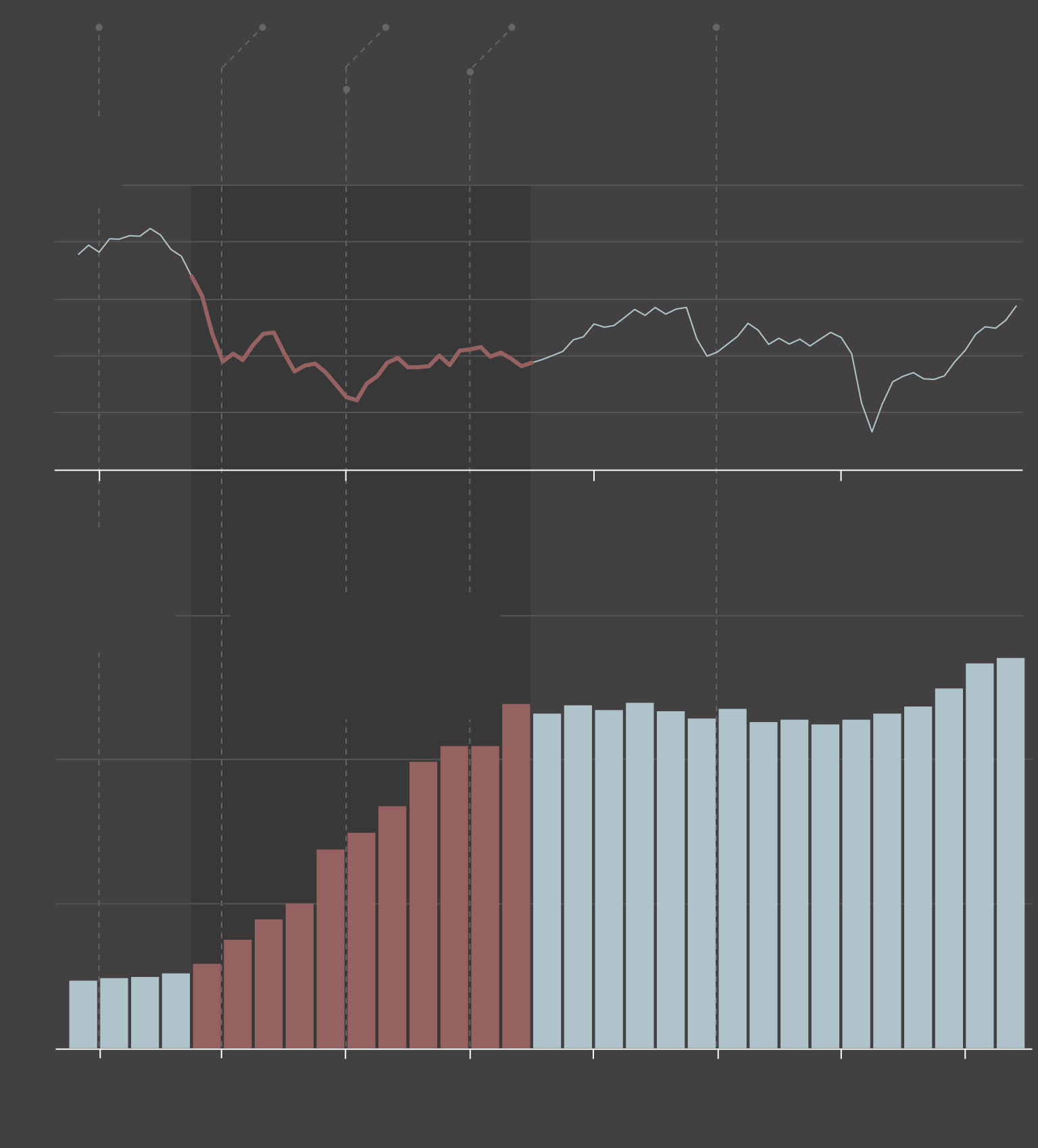 Thanks to the heft of Alberta’s oil and gas industry, Calgary has always had an outsized downtown core for a city of 1.3 million, with double the amount of office space per capita of Toronto’s city centre. The number of workers in those towers has become a barometer for the state of the economy. When the price of oil falls, companies lay off staff or go out of business, leaving empty desks behind.