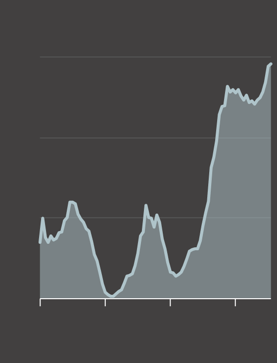 Available space rose by almost five times in just over two years and has stayed at those levels ever since