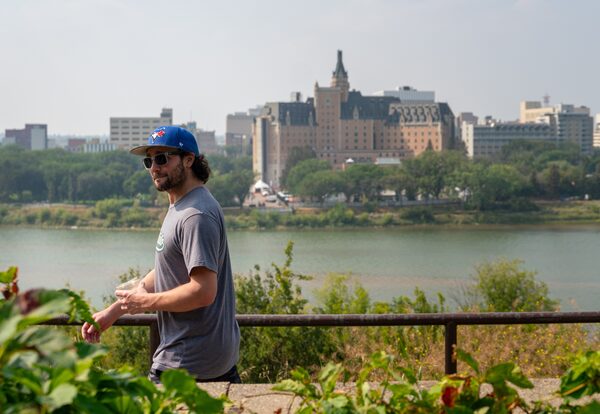 A person walks by the South Saskatchewan River in Saskatoon, Sask., as wildfire smoke blankets the city on Thursday, August 15, 2024.Heywood Yu/The Globe and Mail