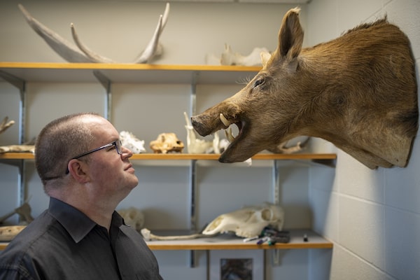 Ryan Brook, shown at his office on the University of Saskatchewan campus in Saskatoon, is one of Canada's foremost researchers of wild boars.Liam Richards/the Globe and Mail