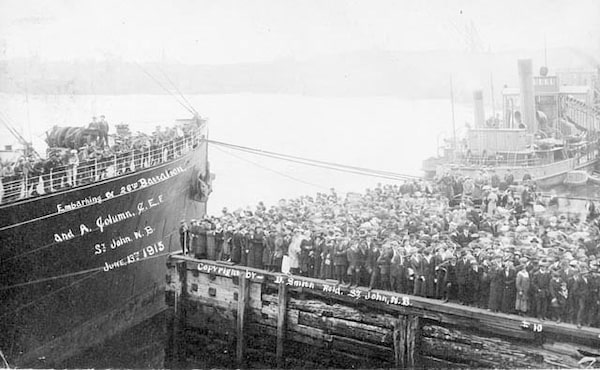 The 26th Canadian Infantry Battalion embarks for England from Saint John on the transport 'Caledonia.'