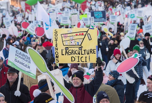 Nov. 18, 2018: People attend a Montreal march in support of the Canadian dairy sector and other farmers, a few weeks after the USMCA breakthrough was announced.Graham Hughes/The Canadian Press