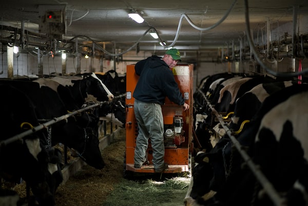 Jim Flewellyn feeds his dairy cows. The cows are milked twice a day.James Park/The Globe and Mail