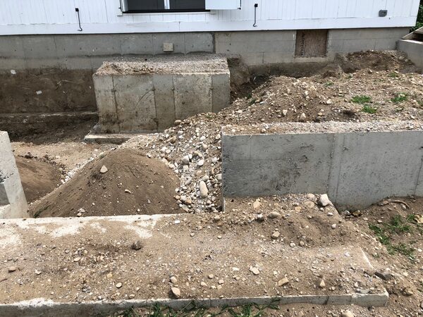 The exposed foundation of Ms. Baker's home.