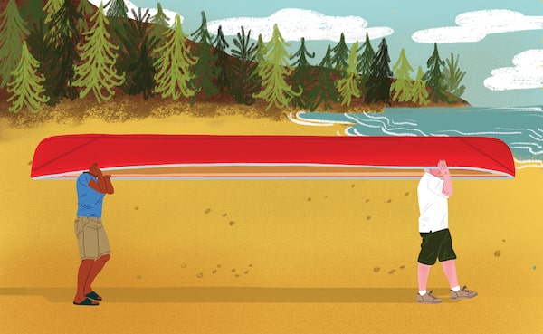 During a pandemic, the bow of a canoe in a boiling rapid feels like a safer place to some than a bar in Montreal or Toronto.Illustration by Salini Perera