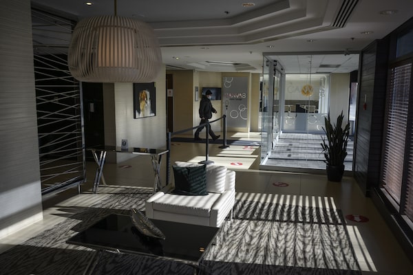 A person walks through the lobby of the Cambridge Suites Hotel in Halifax on March 16, 2021.Darren Calabrese/The Globe and Mail