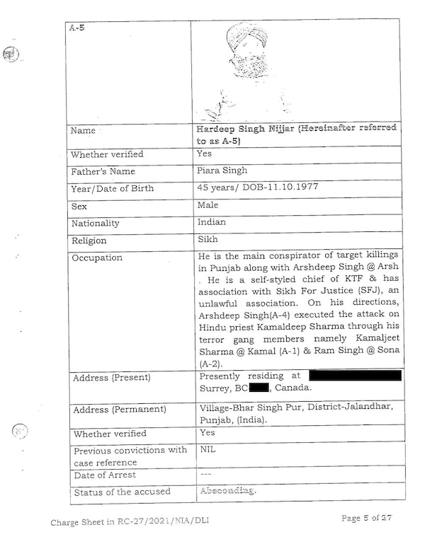 In one of its files on Mr. Nijjar, the Indian National Investigation Agency accuses him of involvement in an attack on Hindu priest Kamaldeep Sharma.National Investigation Agency