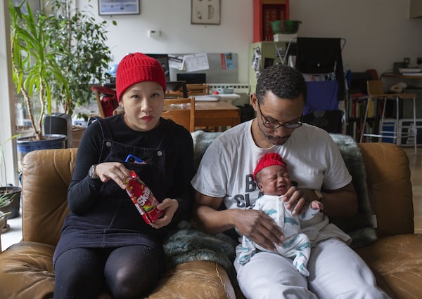 Michelle Siu holds her son, Sekou Siu-Wing-Hung Jalloh, at home in Cambridge, England, this past March. Michelle is a photographer; her partner is a front-line health worker. Their experience of pregnancy during the British pandemic has been one of isolation.Michelle Siu/The Globe and Mail