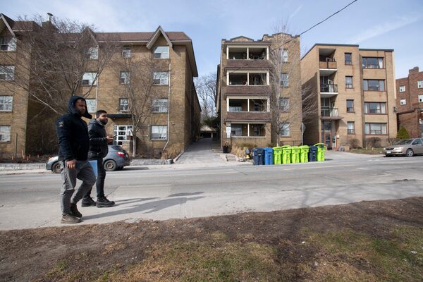 Pedestrians walk past apartment rental buildings in Toronto’s Beach neighbourhood on Mar 11.Fred Lum/The Globe and Mail