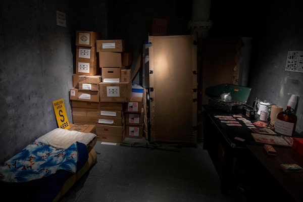 Supplies are stacked in a shelter at the Diefenbunker, Canada's Cold War museum, on the outskirts of Ottawa last fall. Studying this era can be a challenge for historians in Canada, which has no declassification process like those of British and U.S. intelligence services.LARS HAGBERG/AFP via Getty Images