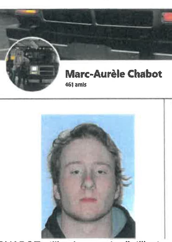 Police allege Marc-Aurèle Chabot was the leading figure in a group of soldiers and ex-military men who harboured extremist views. A court document shows photos of Mr. Chabot's Facebook account and driver's licence.Supplied