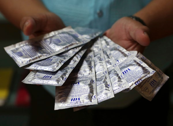 Condoms are displayed in Manila, Philippines, on Thursday, Dec. 8, 2016. Sexual health advocates say limited access to services and contraceptives because of COVID-19 are likely to lead to a surge in unintended pregnancies.Aaron Favila/The Associated Press