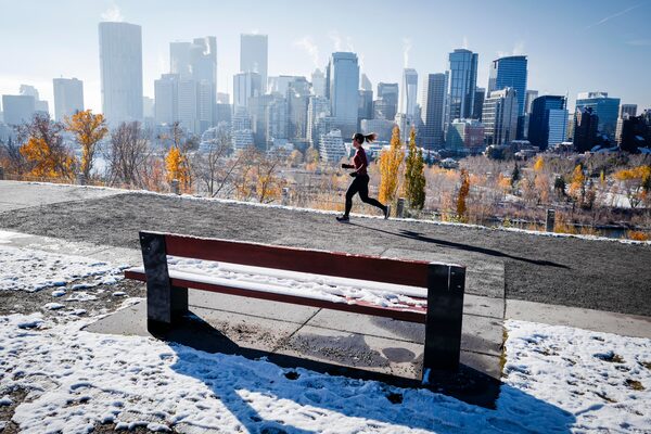 A person goes for a run after a blast of winter in Calgary, on Oct. 22.Jeff McIntosh/The Canadian Press