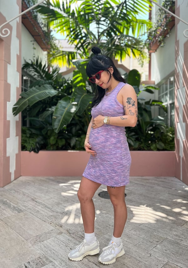 Michelle da Silva cradles her growing bump while on her babymoon in Miami.Supplied