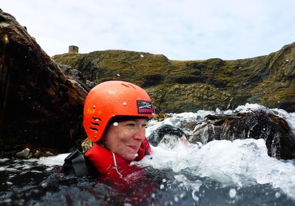 Domini Clark takes a dip during a coasteering adventure in Wales.Celtic Quest Coasteering