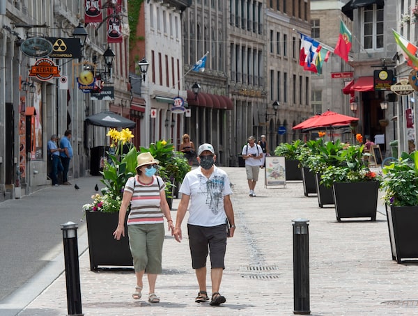 People walk through Old Montreal, on July 22, 2020. An overwhelming majority of Canadians remain just as susceptible to the coronavirus as ever.Ryan Remiorz/The Canadian Press