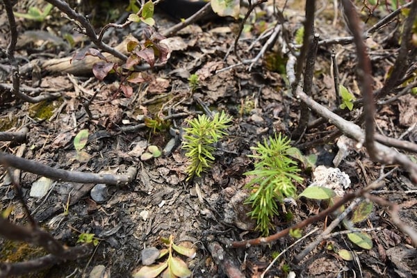 Two fires had torn through the area less than 15 years apart. The first one burned the dense coniferous forest of older trees. The second killed off the young conifers that had sprouted after the first fire. The interval between the fires was too short for the trees to produce mature seeds and regenerate the forest on their own, allowing grasses, shrubs and deciduous trees to take root instead.