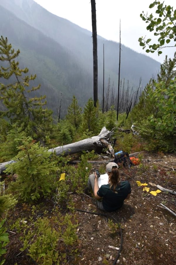 Adria Huser, a research assistant at Thompson Rivers University, surveys the Beaver River valley in B.C.'s Glacier National Park last summer, 20 years after fire swept through the area. Environments such as this give ecologists insight into how wildfires affect the growth of new forests.Courtesy of Jill Harvey
