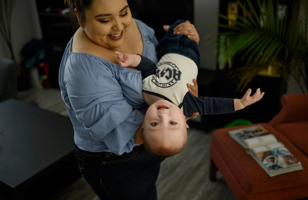 Carmen Barlow plays with her 8-month-old son Logan in their home in Indian Island First Nation, N.B.Darren Calabrese