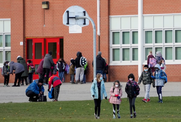 Parents pick up their children as they are dismissed from school on November 22, 2021.Nathan Denette/The Canadian Press
