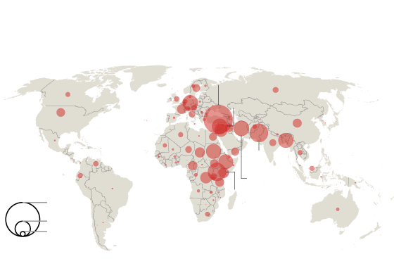 *Number displaced per 1,000 world population