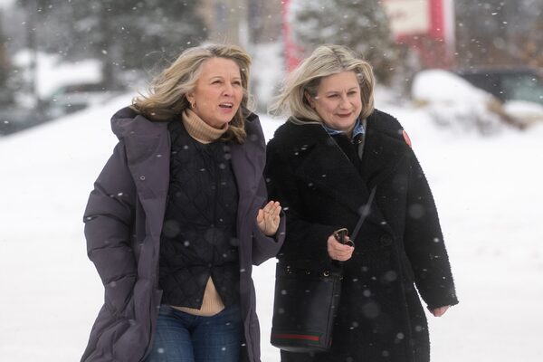 Ontario NDP leader Marit Stiles walks with local NDP candidate Lisa Vezeau-Allen during a campaign stop in Sault Ste. Marie, Ont., on Feb. 7.Kenneth Armstrong/The Canadian Press