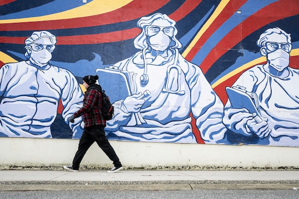 A mural of healthcare workers outside Vancouver General Hospital.Jennifer Gauthier/The Globe and Mail