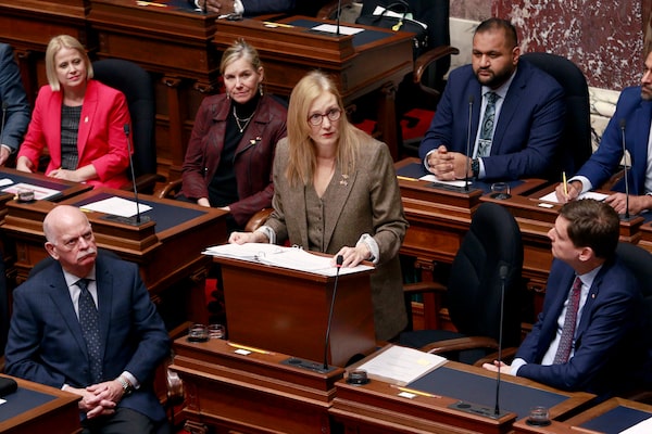 Minister of Finance Brenda Bailey tables her first budget in the legislative assembly at legislature in Victoria, on March 4.CHAD HIPOLITO/The Canadian Press