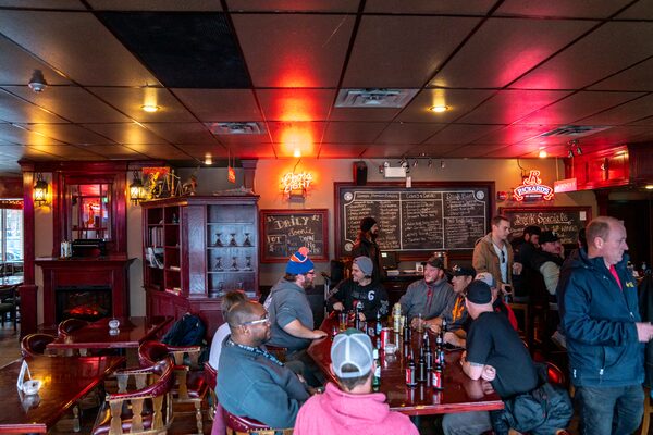 Current and laid-off Bombardier employees commiserate at a local bar.