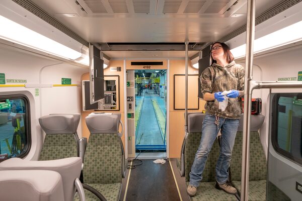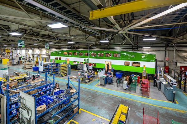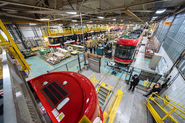 Plant manager Dave Black glows with pride as he guides a visitor around the bright, busy floor of the plant, showing off new streetcars in gleaming red and the bilevel GO cars in avocado green. Country music plays in one GO unit as finishers make their last checks. A streetcar stands in a sealed compartment, ready for high-pressure spraying aimed to make sure it is waterproof. Another is getting fibreglass panels applied to its metal frame in a temperature-controlled bonding chamber.