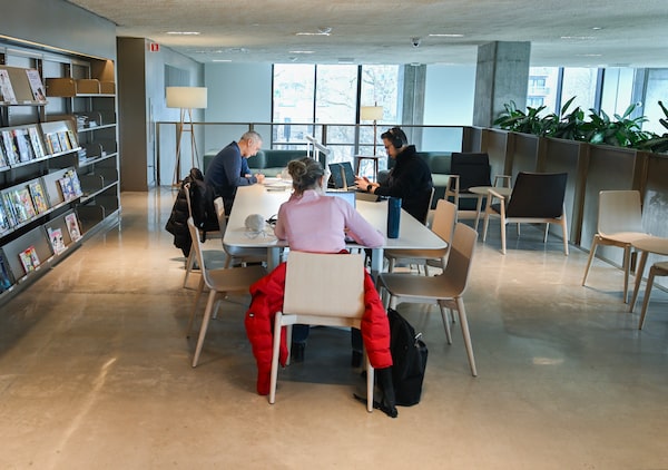 People sit in the lounge area of the library at the Sanaaq Centre in Montreal on a recent Friday.Graham Hughes/The Globe and Mail