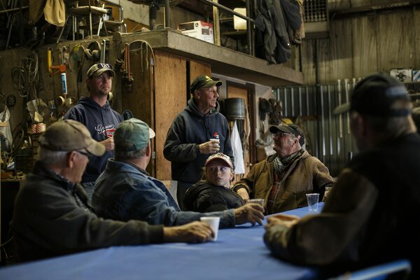 The Westmans serve meals as both fuel for the crew during the day and as a thank you. They dish up macaroni salad, burgers, pickled beets, lasagna, fresh veggies and more. Cans of Bud Light, Twisted Teas and other boozy beverages are on ice in two coolers. There’s a table covered with bottles of hard liquor and fixings, such as Tabasco sauce.