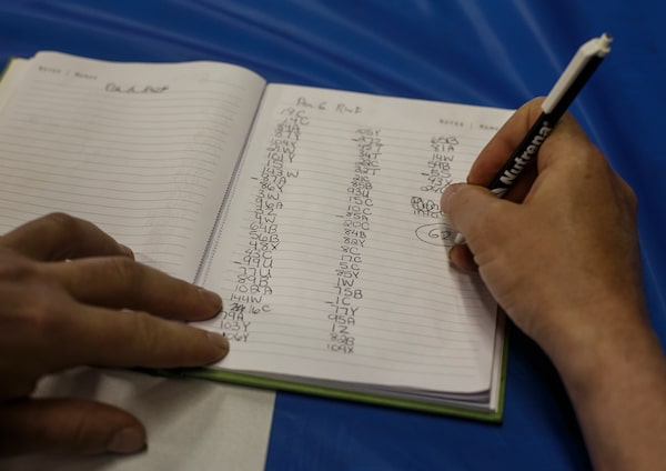 Kyle Westman counts the cattle in his book.JASON FRANSON/The Globe and Mail