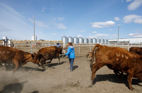 There are eight options. The best go to a pen the Westmans call “the alley”; the injured, to one next to the calving barn; others to numbered pens. As each pair goes through the beauty-pageant pen, another team – horseback riders and foot soldiers – guides them into Kyle’s pen of choice, where the cattle will spend the night. Lindsey records their ear-tag ID and pen number in a green notebook.