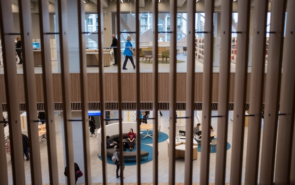 Visitors explore the new Calgary Library following its opening in Calgary, Alta., Thursday, Nov. 1, 2018. The library’s system was shut down due to a cyber attack, branches will reopen Wednesday and cardholders will be able to take out books and materials.Jeff McIntosh/The Canadian Press