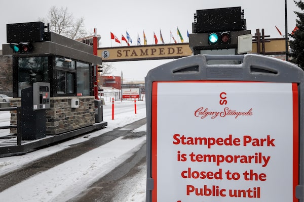 The Calgary Stampede grounds sit closed on March 18, 2020.Jeff McIntosh/The Canadian Press