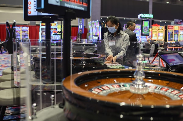 Croupiers wait for clients on the opening day of the Great Canadian Casino Resort Toronto, on June 20, 2023.Christopher Katsarov/The Globe and Mail