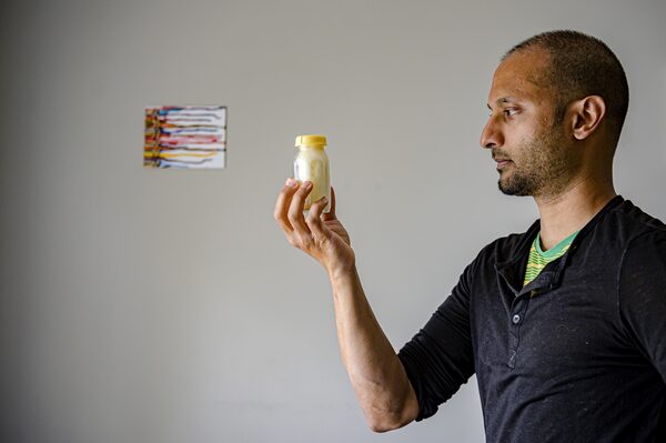 Viraj Mane, co-founder of Lactiga, holds a vial of antibodies extracted from breast milk.Christopher Katsarov/(Christopher Katsarov/The Globe