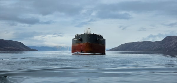 Bulk carrier Hauke Oldendorff heads to Milne Port to retrieve a load of iron ore from Mary River Mine on Baffin Island, Nunavut. Marine animals are negatively affected by underwater noise – especially noise from ships.ALEXANDER JAMES OOTOOWAK/Supplied