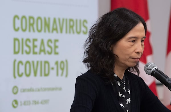 Chief Public Health Officer Theresa Tam listens to a question on a teleconference about COVID-19 during a news conference on Sunday March 15, 2020 in Ottawa. Ontario and Quebec each saw spikes in confirmed cases Sunday as Alberta announced it has several cases of community transmission, forcing the closing of schools and daycares indefinitely.Adrian Wyld/The Canadian Press